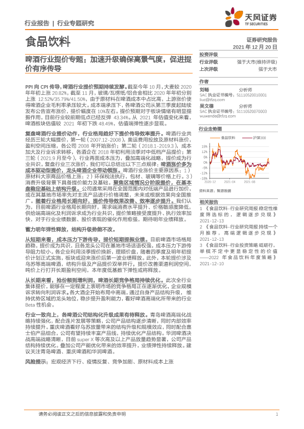 【天风证券】【20211220】食品饮料行业专题研究:啤酒行业提价专题,加速升级确保高景气度,促进提价有序传导-16页