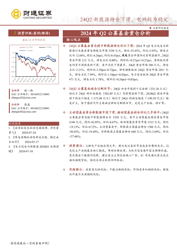 【财通证券】【20240723】电力设备行业专题报告-2024年Q2公募基金重仓分析-13页