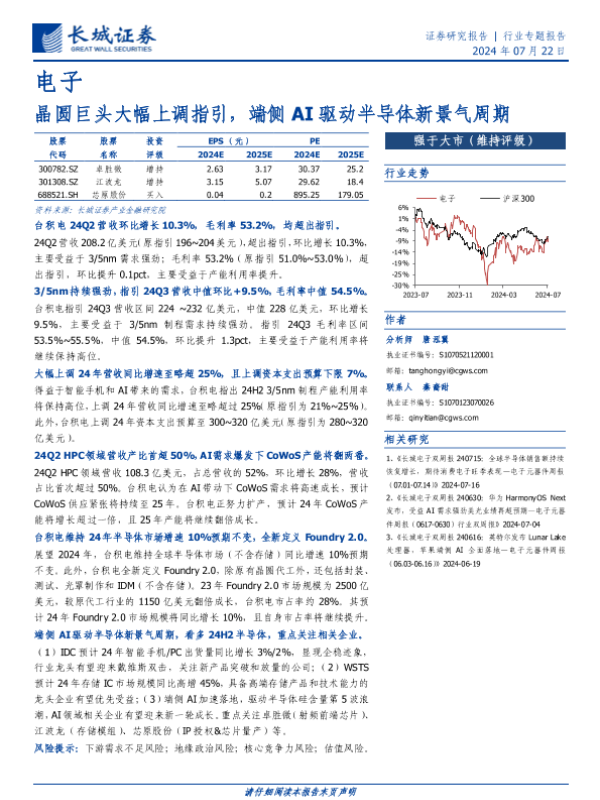 【长城证券】【20240722】电子行业专题报告:晶圆巨头大幅上调指引,端侧AI驱动半导体新景气周期-13页