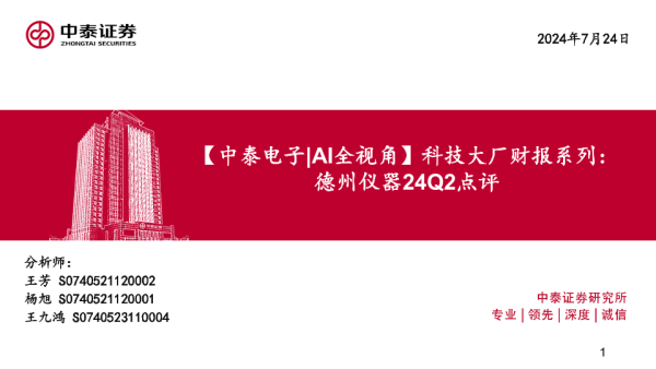 【中泰证券】【20240724】电子行业|AI全视角-科技大厂财报系列:德州仪器24Q2点评-13页