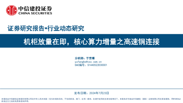 【中信建投证券】【20240723】电子行业:机柜放量在即,核心算力增量之高速铜连接-35页