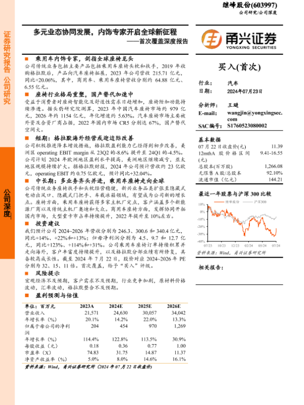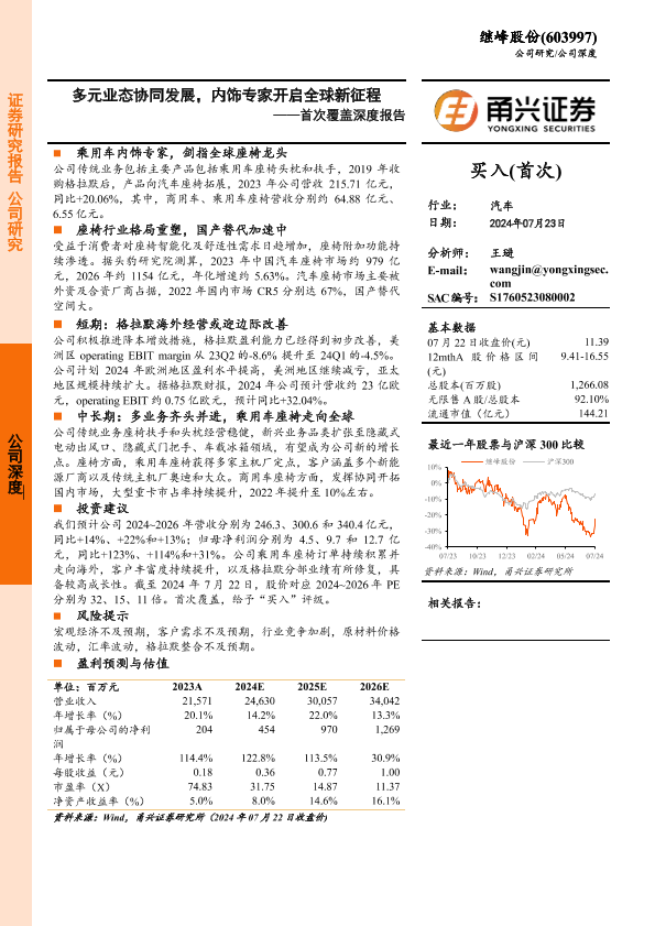 【甬兴证券】【20240723】继峰股份(603997)首次覆盖深度报告:多元业态协同发展,内饰专家开启全球新征程-25页
