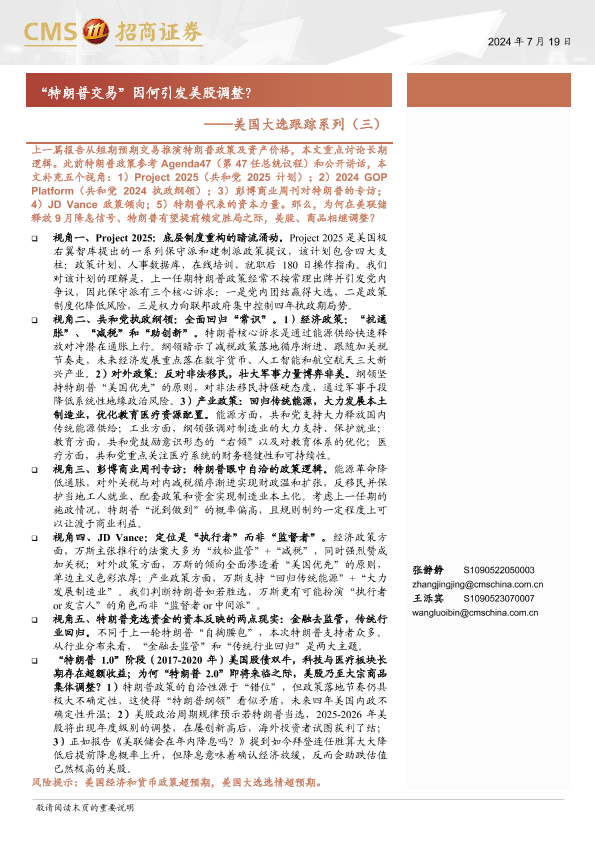 【海通证券】【20240719】美国大选跟踪系列(三):“特朗普交易”因何引发美股调整?-14页