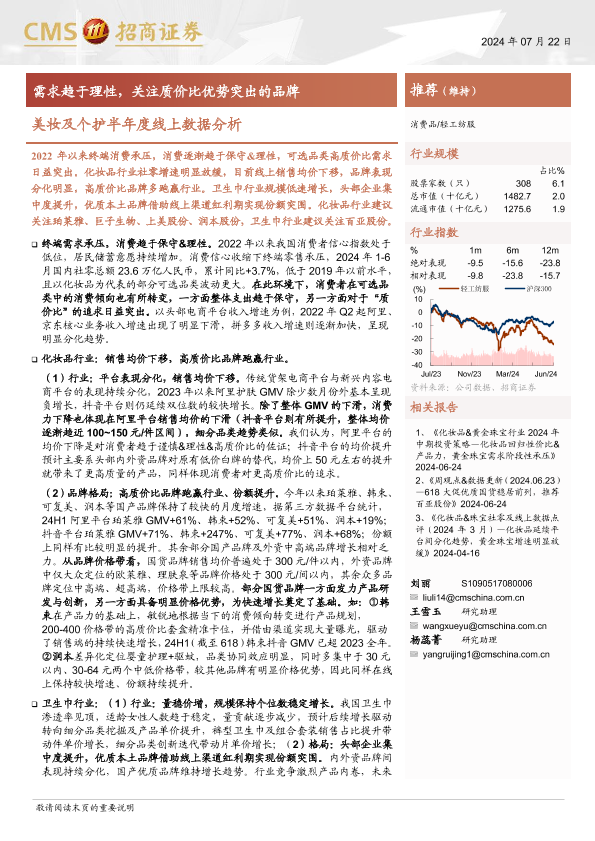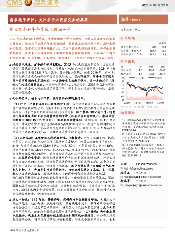【海通证券】【20240722】美妆及个护行业半年度线上数据分析:需求趋于理性,关注质价比优势突出的品牌-29页