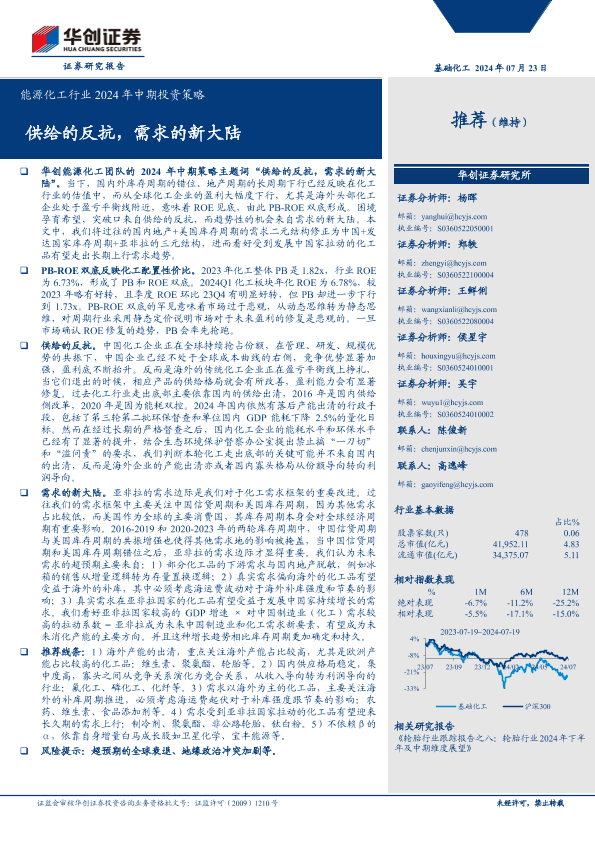 【华创证券】【20240723】能源化工行业2024年中期投资策略:供给的反抗,需求的新大陆-34页