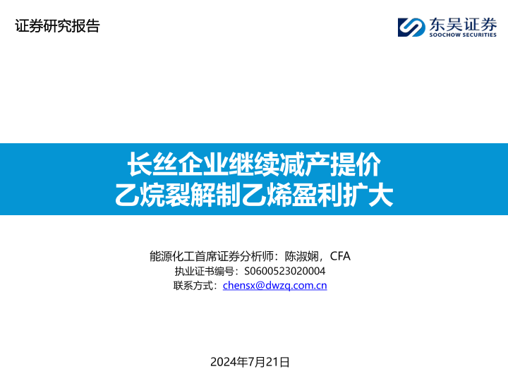 【东吴证券】【20240721】能源化工行业:长丝企业继续减产提价,乙烷裂解制乙烯盈利扩大-46页