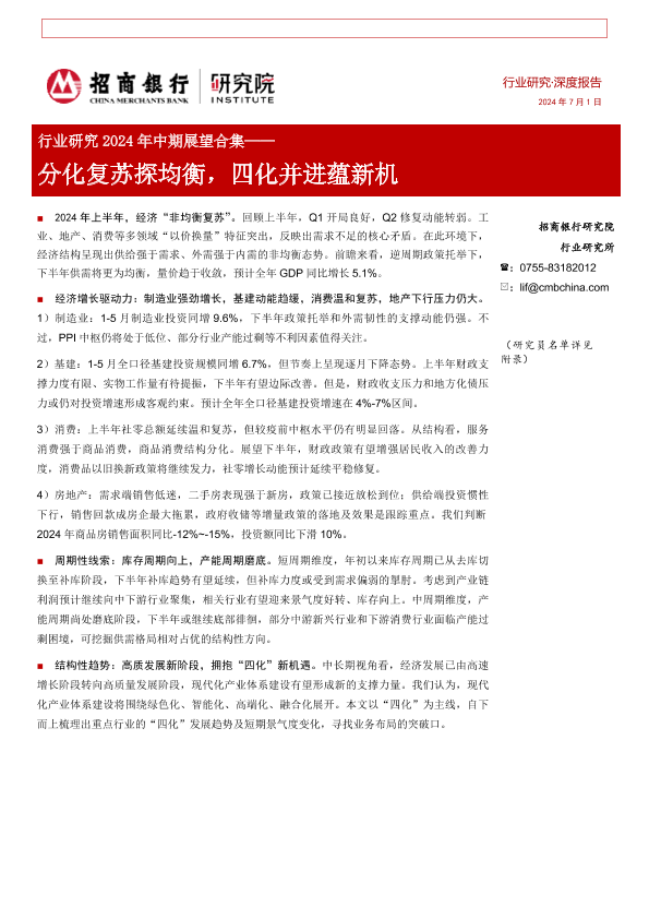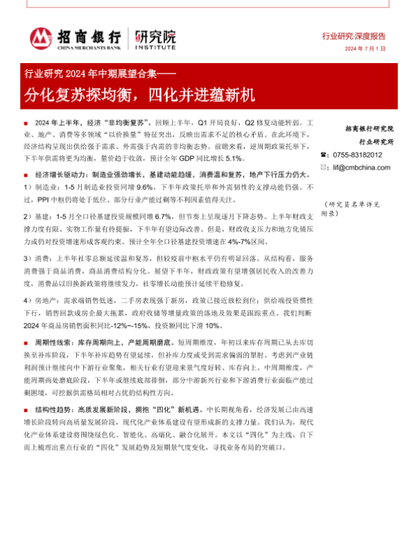 【招商银行】【20240701】行业研究2024年中期展望合集:分化复苏探均衡,四化并进蕴新机-152页