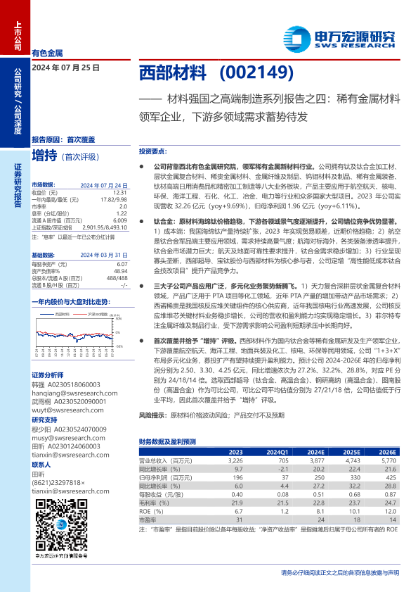 【申万宏源】【20240725】西部材料(002149)材料强国之高端制造系列报告之四:稀有金属材料领军企业,下游多领域需求蓄势待发-33页