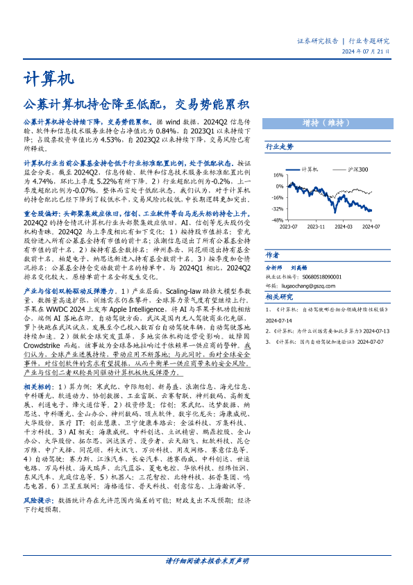 【国盛证券】【20240721】计算机行业专题研究:公募计算机持仓降至低配,交易势能累积-14页