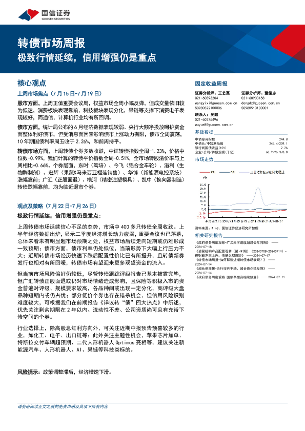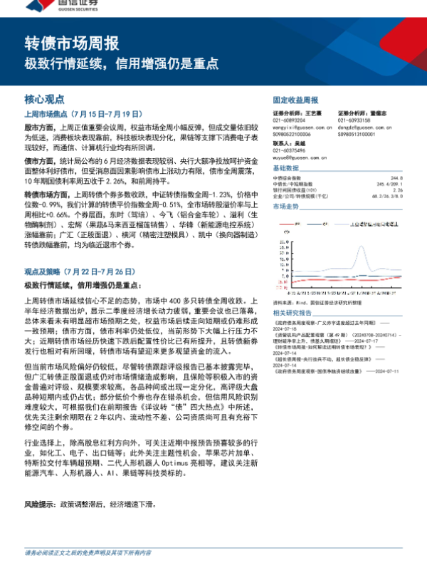 【国信证券】【20240721】转债市场:极致行情延续,信用增强仍是重点-14页