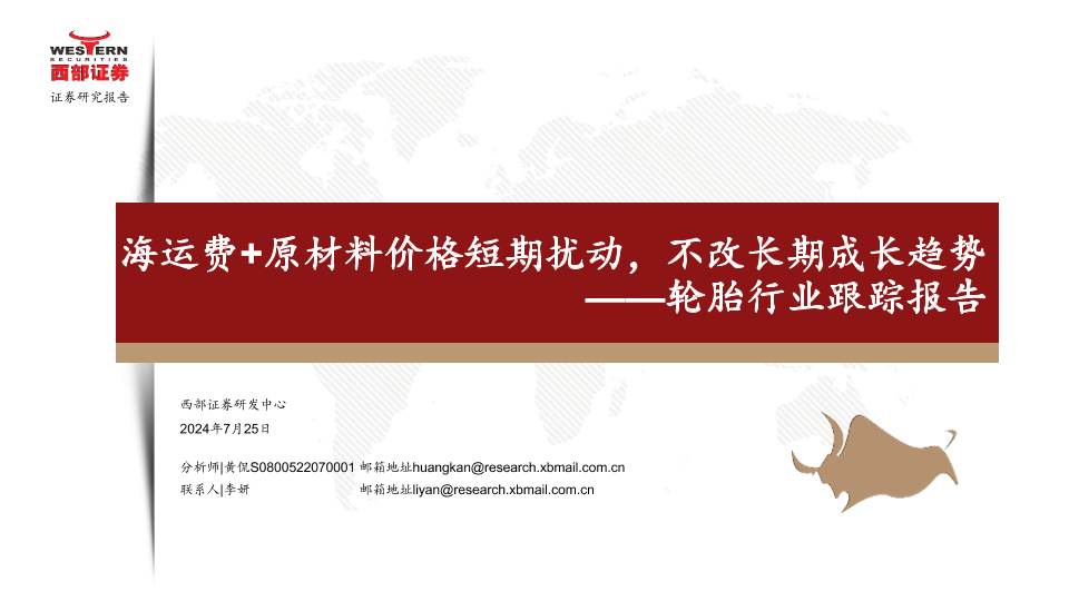 【西部证券】【20240725】轮胎行业跟踪报告:海运费+原材料价格短期扰动,不改长期成长趋势-37页