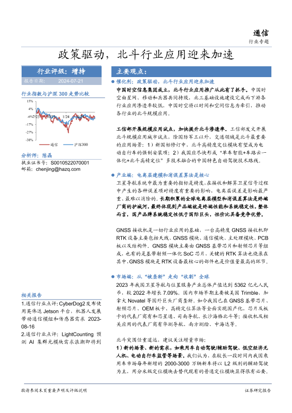 卫星导航 政策驱动 行业应用 高精度定位 北斗