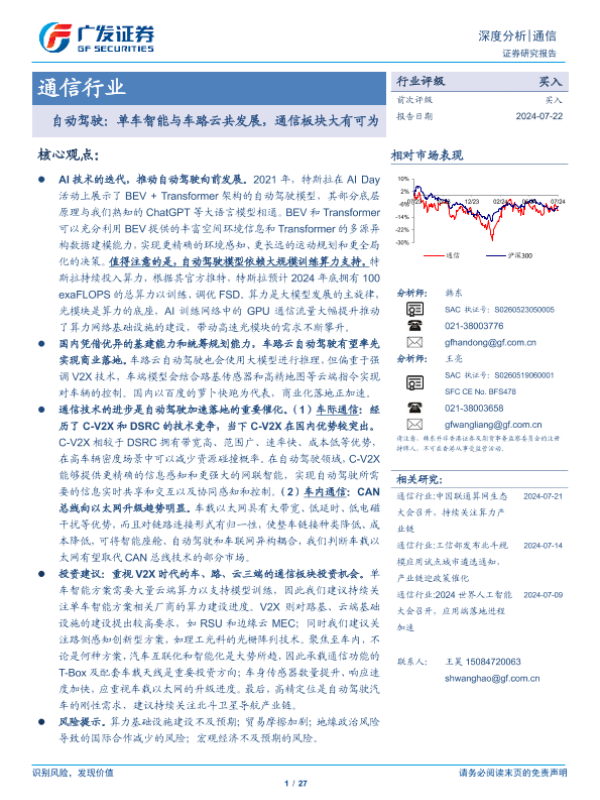 【广发证券】【20240722】通信行业自动驾驶:单车智能与车路云共发展,通信板块大有可为-27页