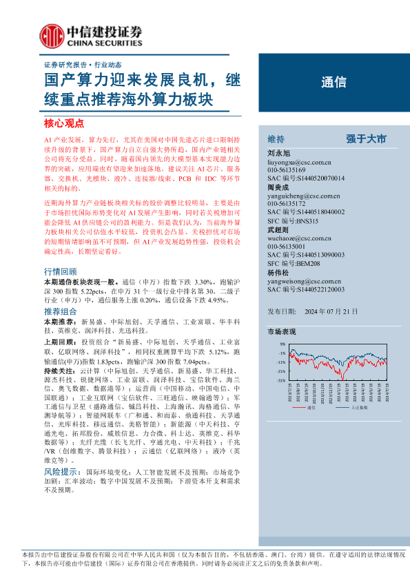 【中信建投证券】【20240721】通信行业:国产算力迎来发展良机,继续重点推荐海外算力板块-13页