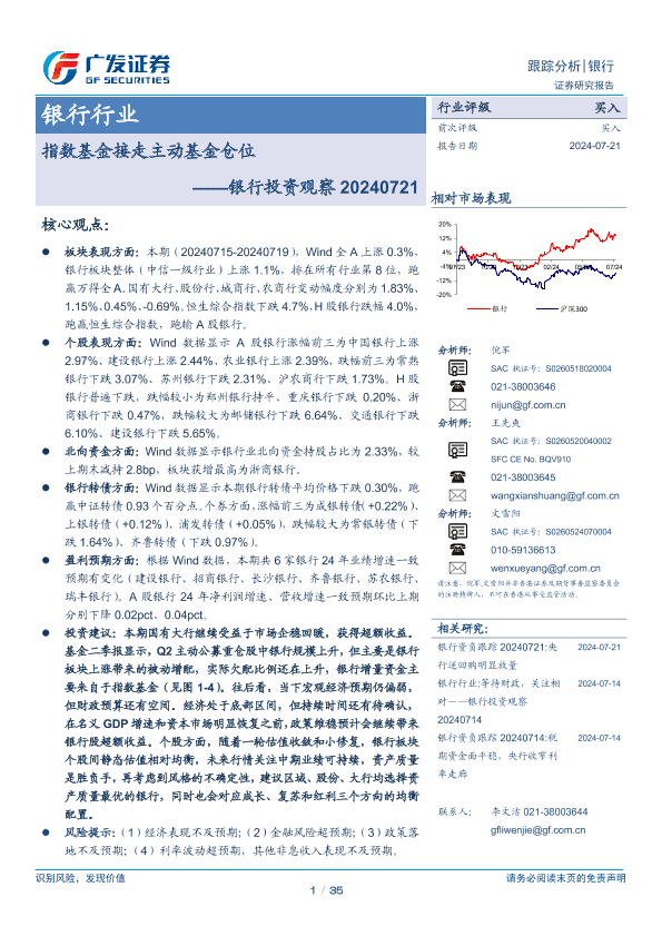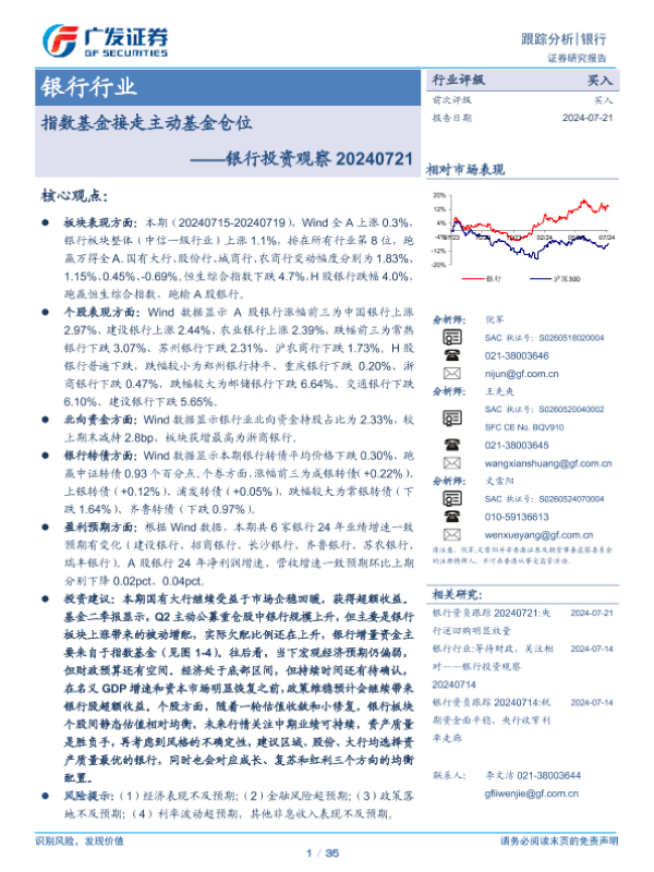 【广发证券】【20240721】银行业投资观察:指数基金接走主动基金仓位-35页
