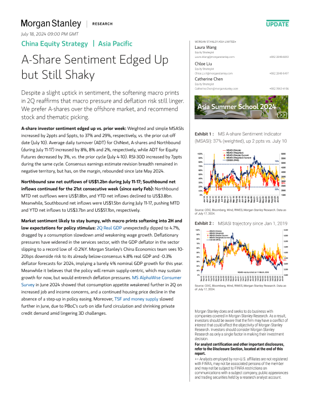 【Morgan Stanley】【20240717】Morgan Stanley-China Equity Strategy A-Share Sentiment Edged Up but Still Shaky-11页