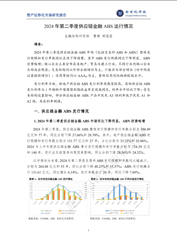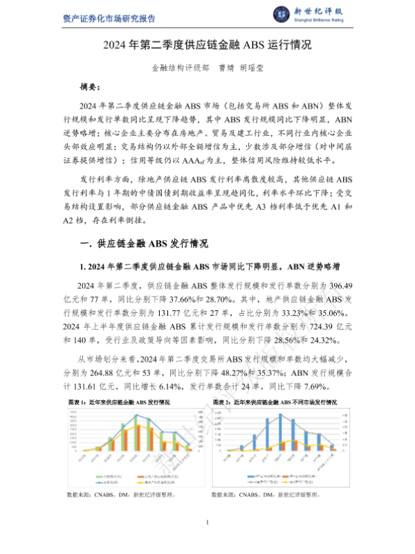 ABS 供应链金融 发行情况 资产证券化 金融市场