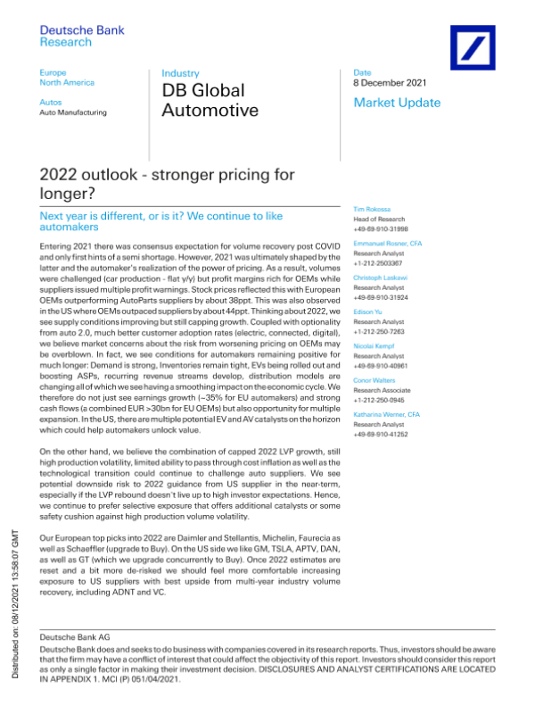 【Deutsche Bank Research】【20211208】全球汽车制造行业-2022年的前景:更强劲的定价将持续多久-40页