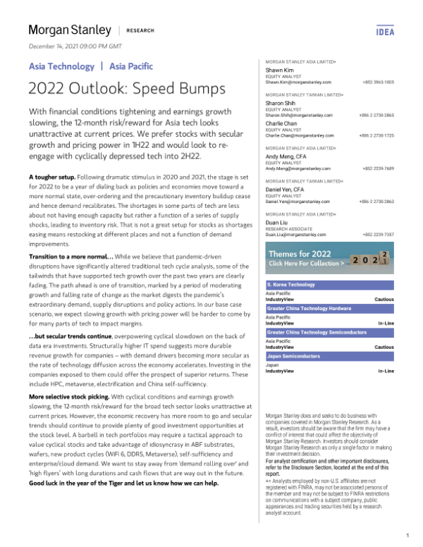 【Morgan Stanley】【20211214】亚太地区科技行业-2022年展望:减速带-40页