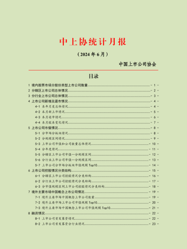 【中国上市公司协会】【20240630】中上协统计月报(2024年6月)-24页
