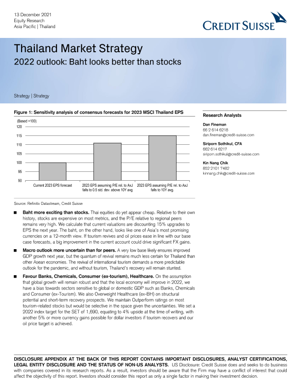 【Credit Suisse】【20211213】瑞信-亚太地区投资策略-泰国市场策略之2022年展望:泰铢看起来比股票要好-78页