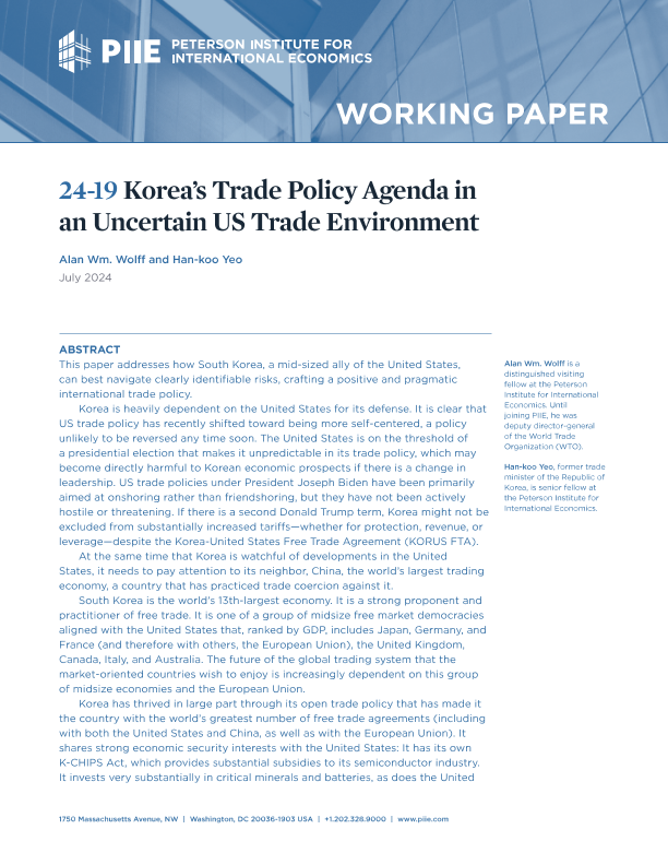 【彼得森经济研究所】【202407】不确定的美国贸易环境下的韩国贸易政策议程-38页