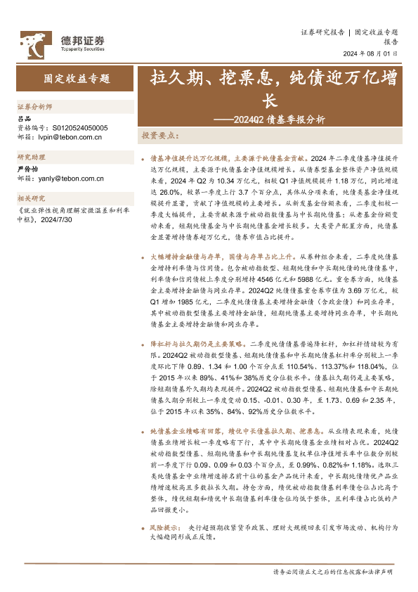 【德邦证券】【20240801】2024Q2债基季报分析:拉久期、挖票息,纯债迎万亿增长-13页