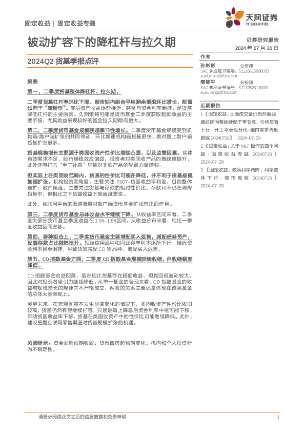 【天风证券】【20240730】2024Q2货基季报点评:被动扩容下的降杠杆与拉久期-11页