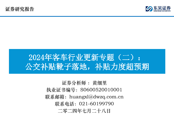 【东吴证券】【20240728】2024年客车行业更新专题(二):公交补贴靴子落地,补贴力度超预期-14页