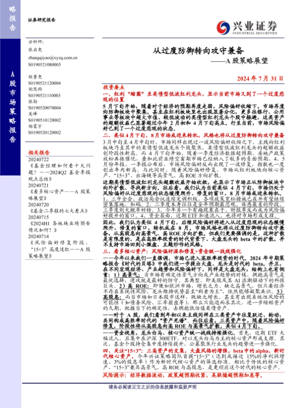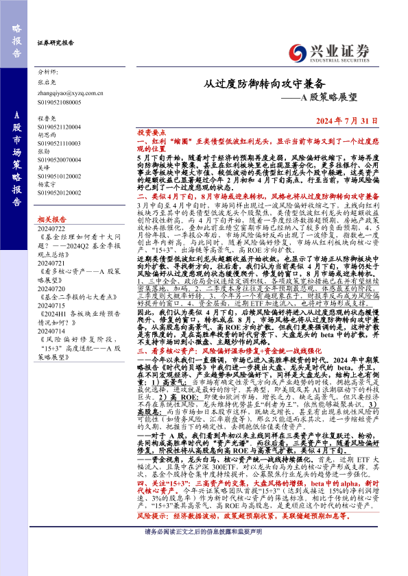 【兴业证券】【20240731】从过度防御转向攻守兼备——A股策略展望-11页