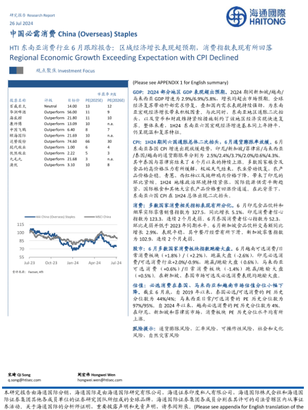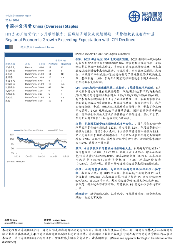 【海通国际】【20240726】HTI东南亚消费行业6月跟踪报告:区域经济增长表现超预期,消费指数表现有所回落-30页