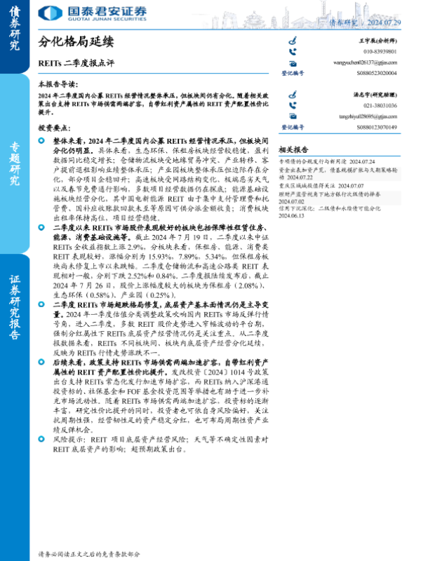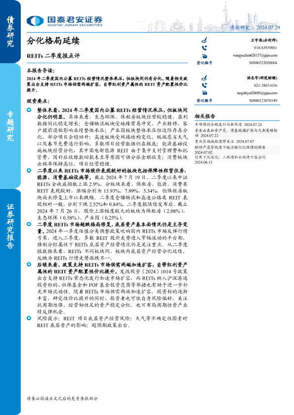 【国泰君安证券】【20240729】REITs二季度报点评:分化格局延续-17页