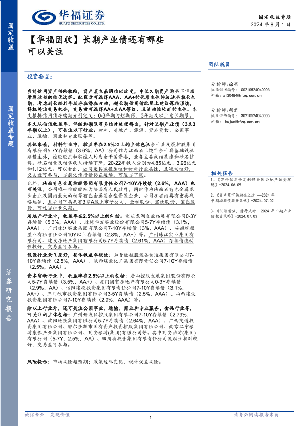 【华福证券】【20240801】【华福固收】长期产业债还有哪些可以关注-10页