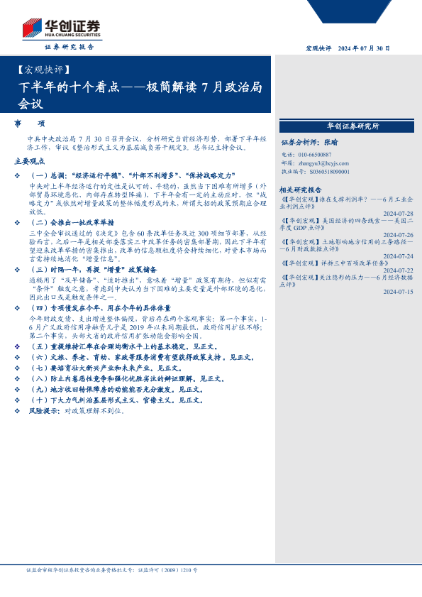 【华创证券】【20240730】【宏观快评】极简解读7月政治局会议:下半年的十个看点-13页