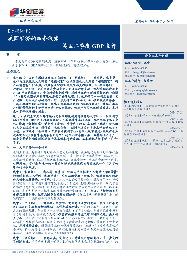 【华创证券】【20240726】【宏观快评】美国二季度GDP点评:美国经济的四条线索-15页