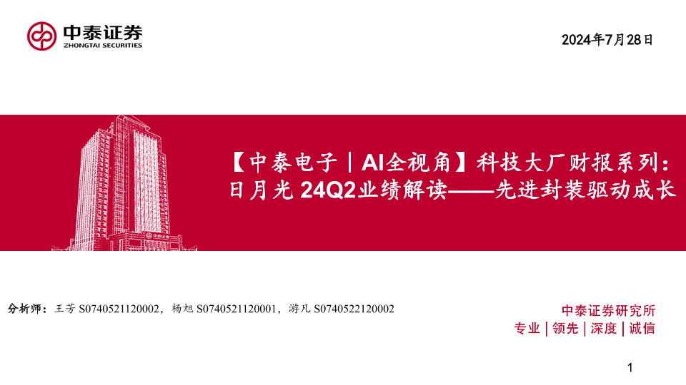 【中泰证券】【20240728】科技大厂财报系列:日月光24Q2业绩解读——先进封装驱动成长-19页