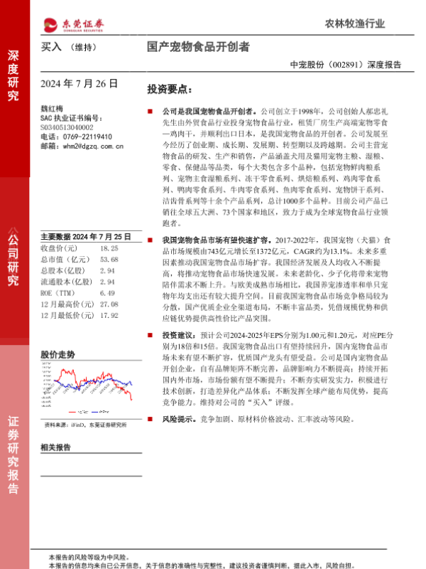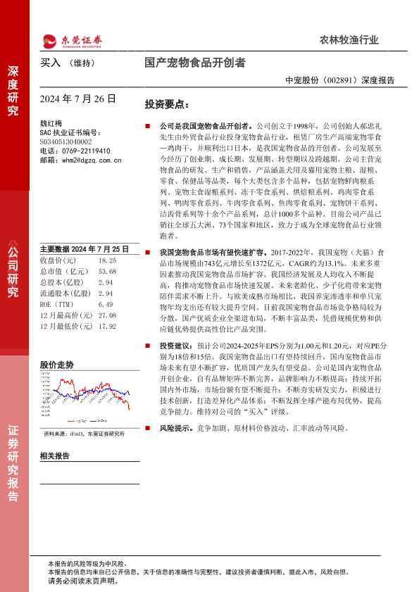 【东莞证券】【20240726】中宠股份(002891)深度报告:国产宠物食品开创者-22页