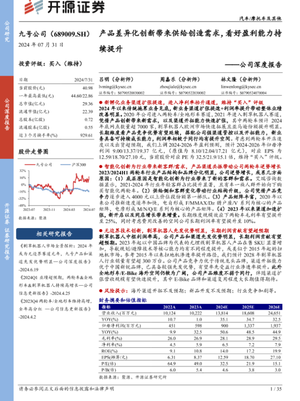 【开源证券】【20240731】九号公司(689009)公司深度报告:产品差异化创新带来供给创造需求,看好盈利能力持续提升-35页