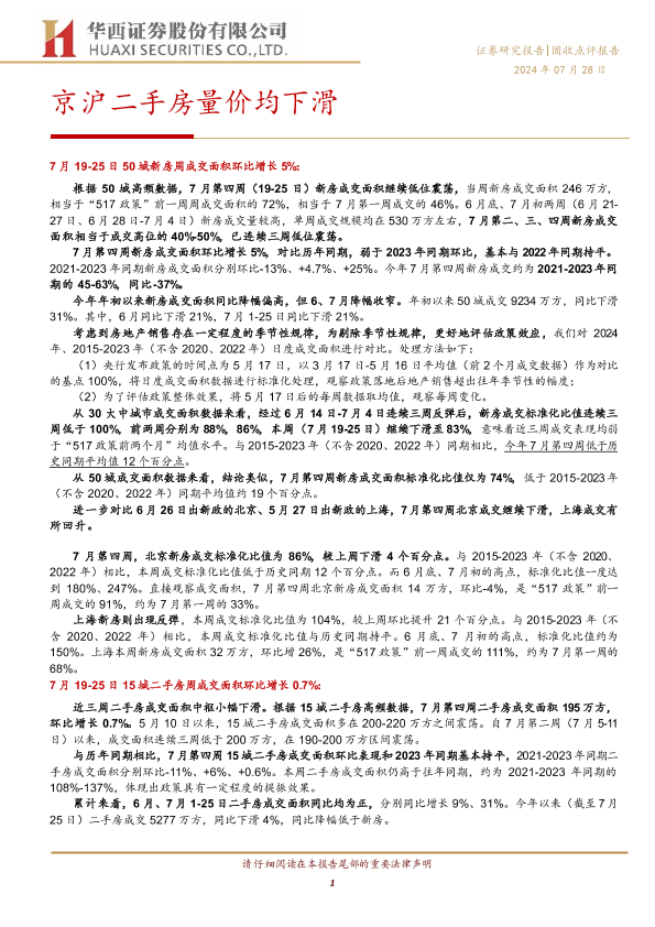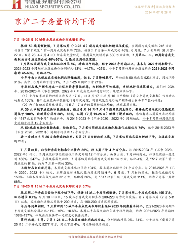 【华西证券】【20240728】京沪二手房量价均下滑-13页