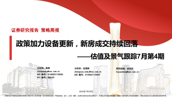 【中信建投证券】【20240729】估值及景气跟踪7月第4期:政策加力设备更新,新房成交持续回落-28页