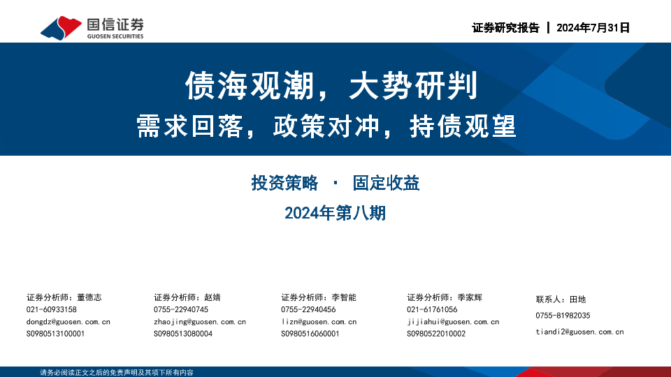 【国信证券】【20240731】债海观潮,大势研判:需求回落,政策对冲,持债观望-53页