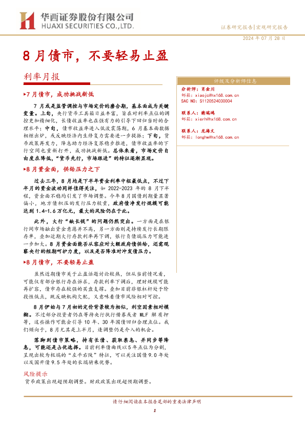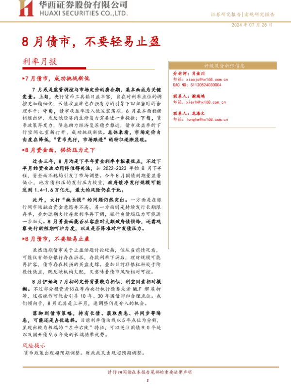 【华西证券】【20240728】8月债市,不要轻易止盈-15页