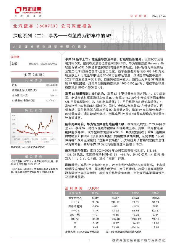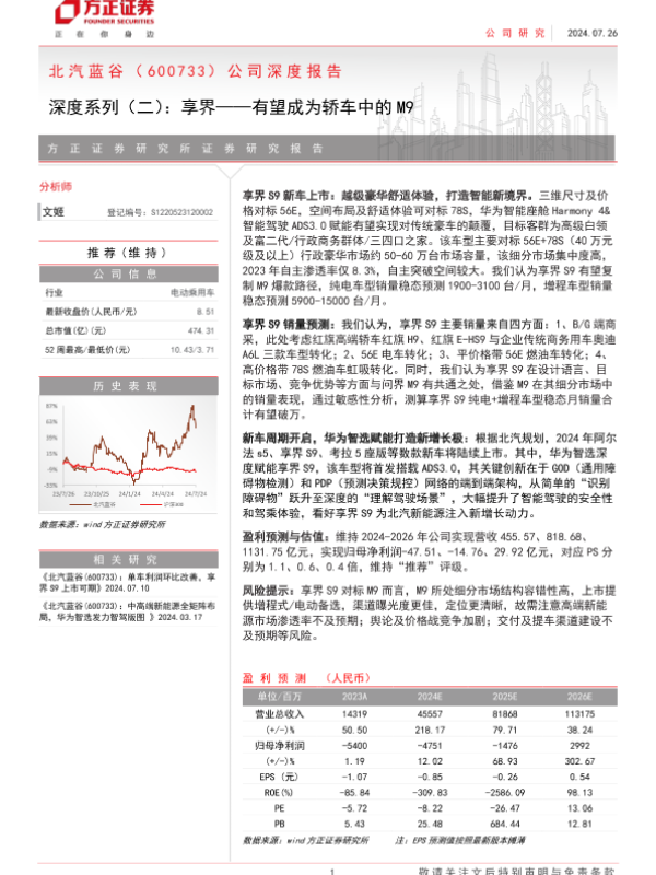 【方正证券】【20240726】北汽蓝谷(600733)公司深度报告:深度系列(二),享界-有望成为轿车中的M9-15页
