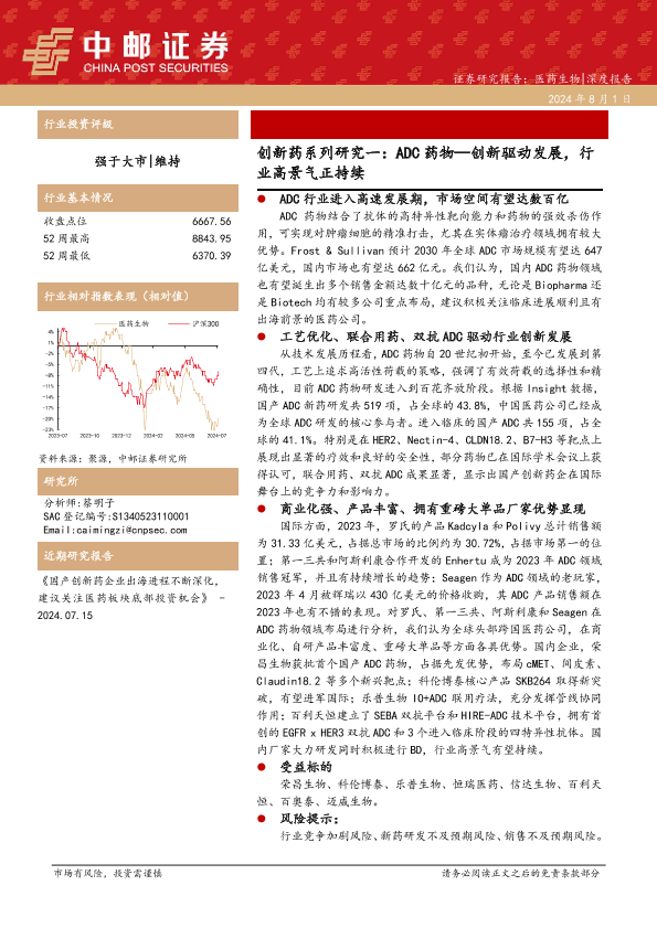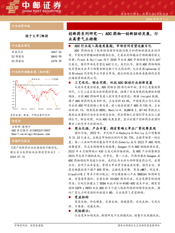 【中邮证券】【20240801】医药生物行业创新药系列研究一:ADC药物—创新驱动发展,行业高景气正持续-42页