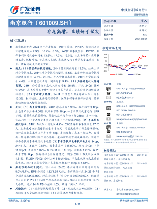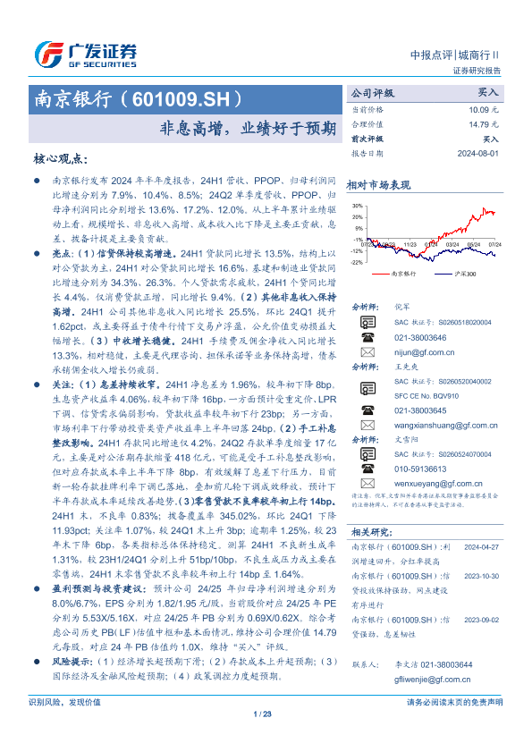 【广发证券】【20240801】南京银行(601009)非息高增,业绩好于预期-23页