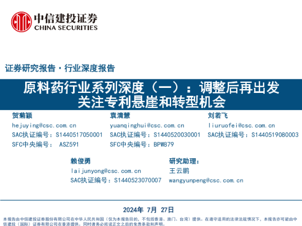 【中信建投证券】【20240727】原料药行业系列深度(一):调整后再出发,关注专利悬崖和转型机会-55页