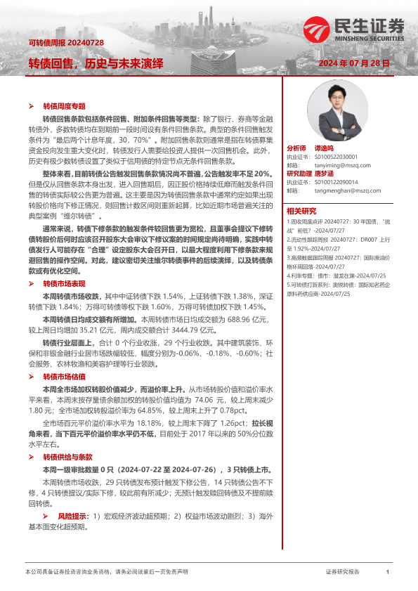 【民生证券】【20240728】可转债:转债回售,历史与未来演绎-21页