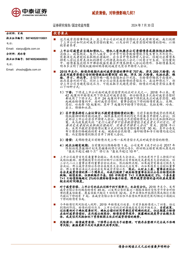 【中泰证券】【20240730】固定收益专题:减资清偿,对转债影响几何?-19页