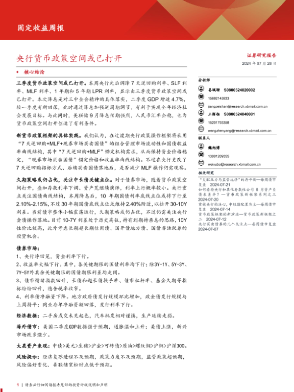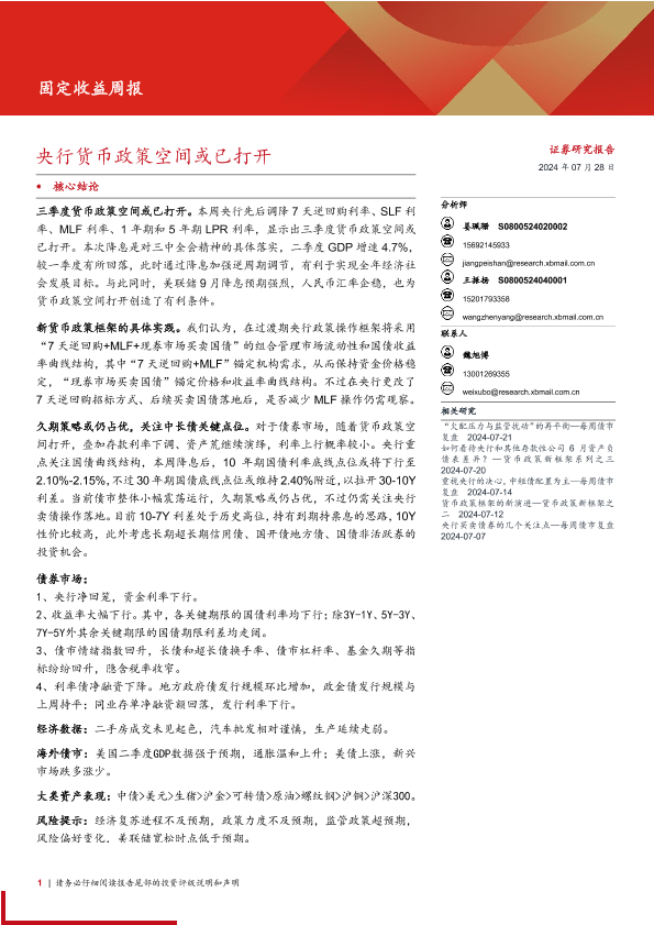 【西部证券】【20240728】固定收益:央行货币政策空间或已打开-19页