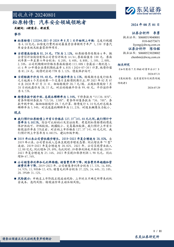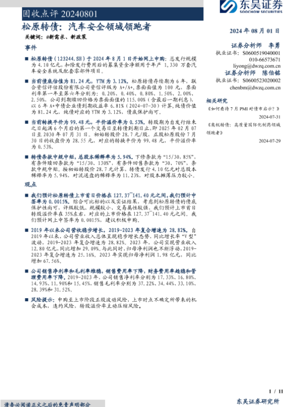 【东吴证券】【20240801】松原转债:汽车安全领域领跑者-11页